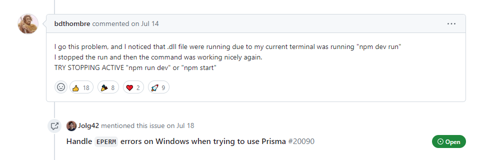 EPERM: operation not permitted, unlink '...node_modules\prisma\query_engine-windows.dll.node' · Issue #9184 · prisma/prisma