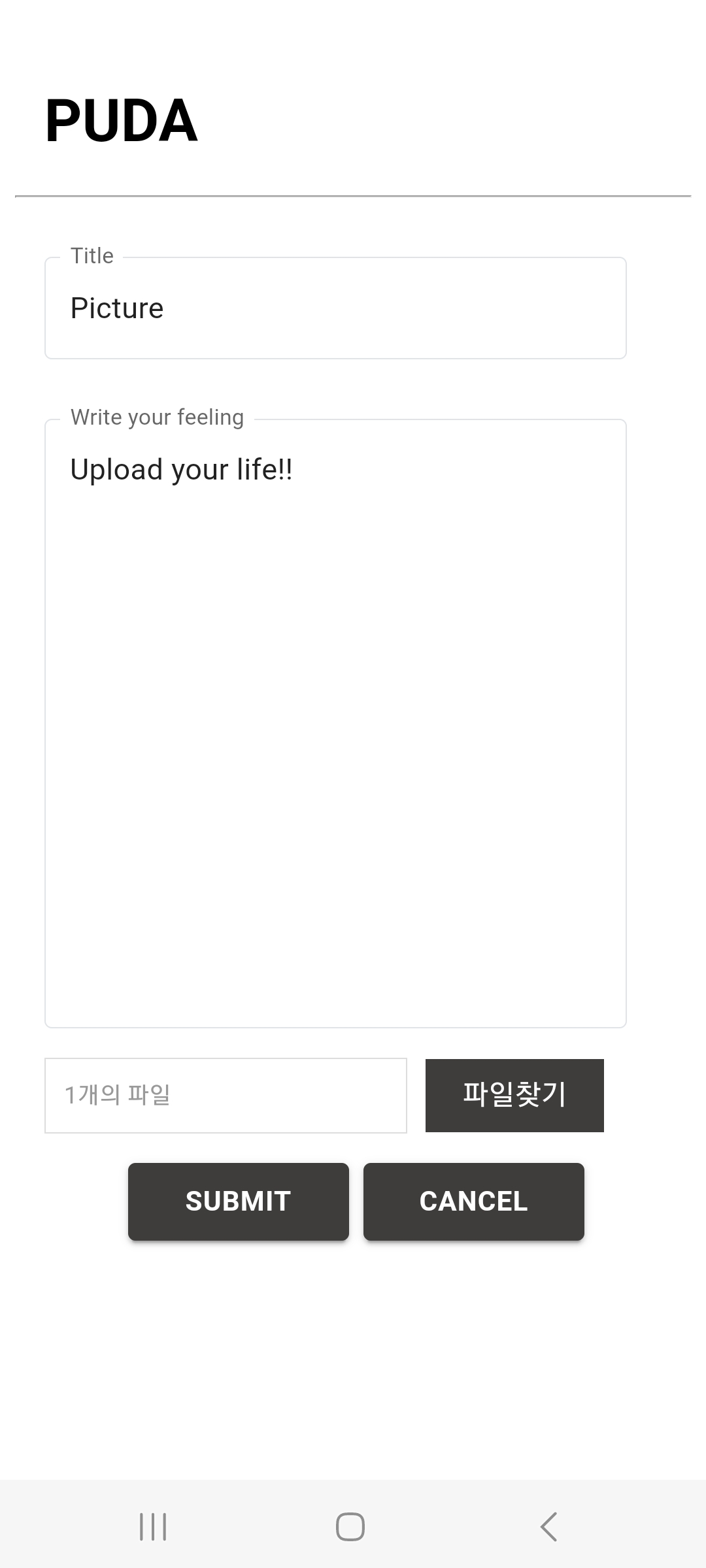 내가 구상한 서비스는 개인 다이어리 앱이다. 그래서 이름이 PUDA다 Private yoUr Diary App. 따라서 접근성이 좋게 모바일 웹으로 개발했고 안드로이드는 리액트 네이티브 웹 뷰로도 빌드해 서비스할 예정이다.