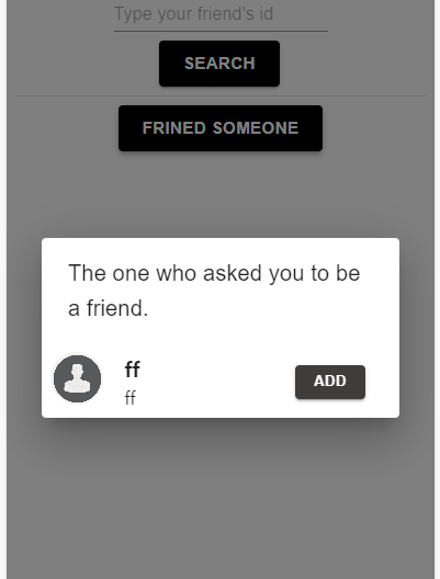 저기 + 버튼을 누르면 친구를 찾는 페이지로 이동하게 된다. 만약 내게 온 친구요청이 없으면 요청이 없다고 알람이 뜨지만 만약 요청이 뜨지 않는다면 누군가 내게 친구 요청을 한 것이다.