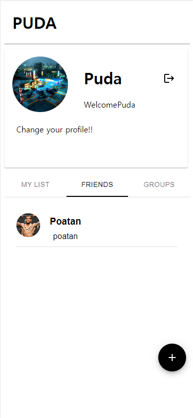 만약 정말 친한 친구나 가족과는 포스팅을 공유를 하고 싶다고 한다면 친구를 만들면 된다. 친구는 Friends 탭으로 이동하면 친구목록을 확인할 수 있다. 친구신청은 + 버튼을 누르면 페이지로 이동하는데 아무나 친구를 신청하면 안되기 때문에 꼭 아이디로만 친구를 검색해 찾을 수 있게 했다.