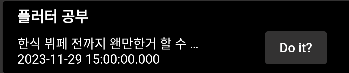 | [Flutter] Execution failed for task ':fluttertoast:compileReleaseKotlin'. 해결법 (0) | 2023.11.15 |