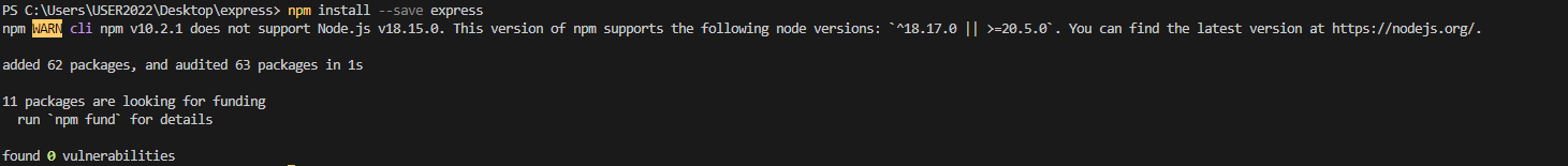 그 다음엔 express를 설치해준다.