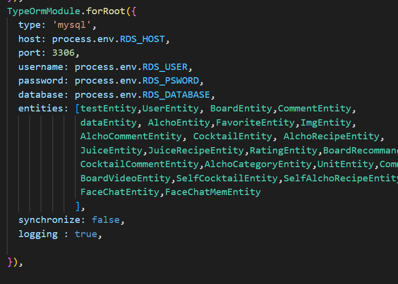 MySQL 연결을 설정한 app.module.ts로 가서 해당 부분의 logging을 true로 바꿔주면 된다.