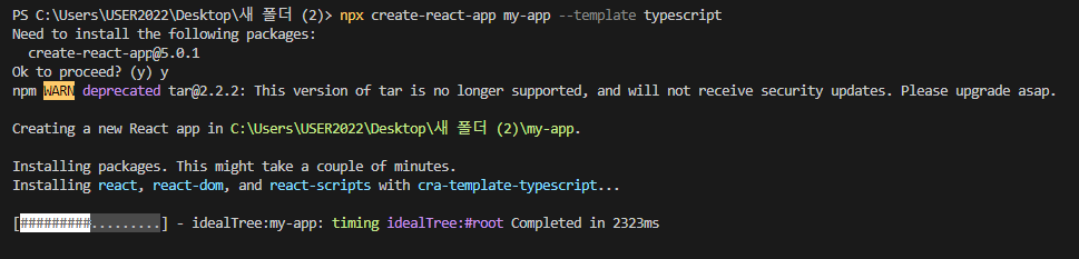 그럼 손 쉽게 타입스크립트를 적용할 리액트 프로젝트가 생성이 된다.