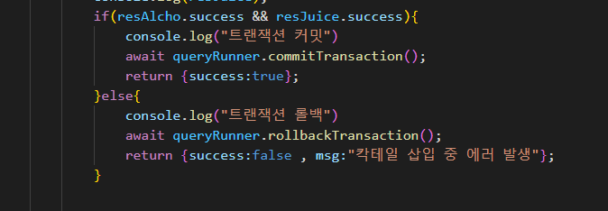 그리고 두번의 insert 작업까지 모두 성공하면 Commit 작업을, 둘 중 하나라도 실패하면 Rollback 작업을 실행한다.