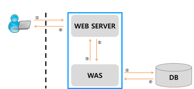 - 사용자로부터 동적인 요청이 들어왔을 때 해당 요청을 웹 서버 자체적으로 처리하기 어렵기 때문에 해당 요청을 WAS에 요청